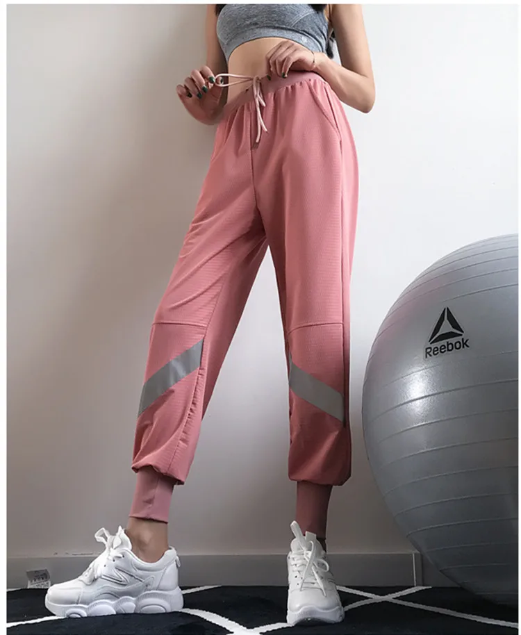 HIGH QUALITY Mesh Quick-Dry Gymnastic Pants Women's Loose-Fit Reflective Running Pants Elasticity Fitness Yoga P